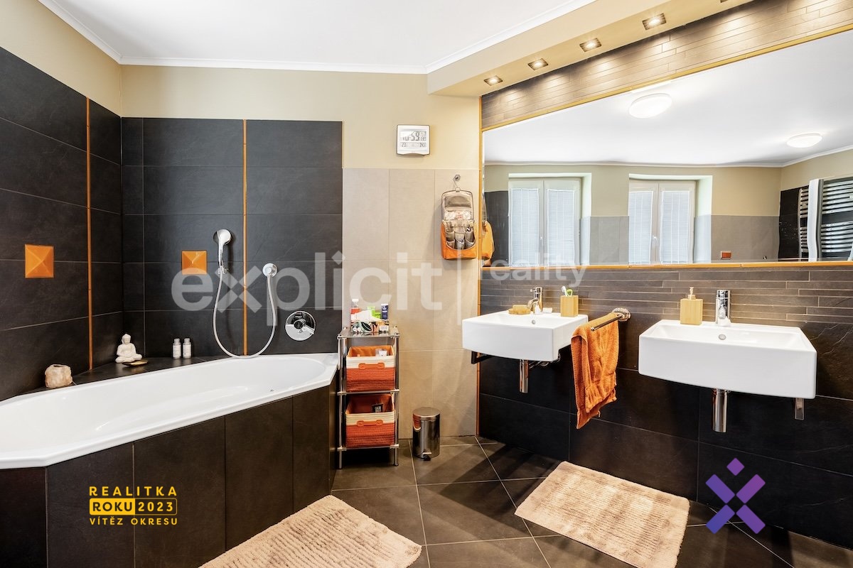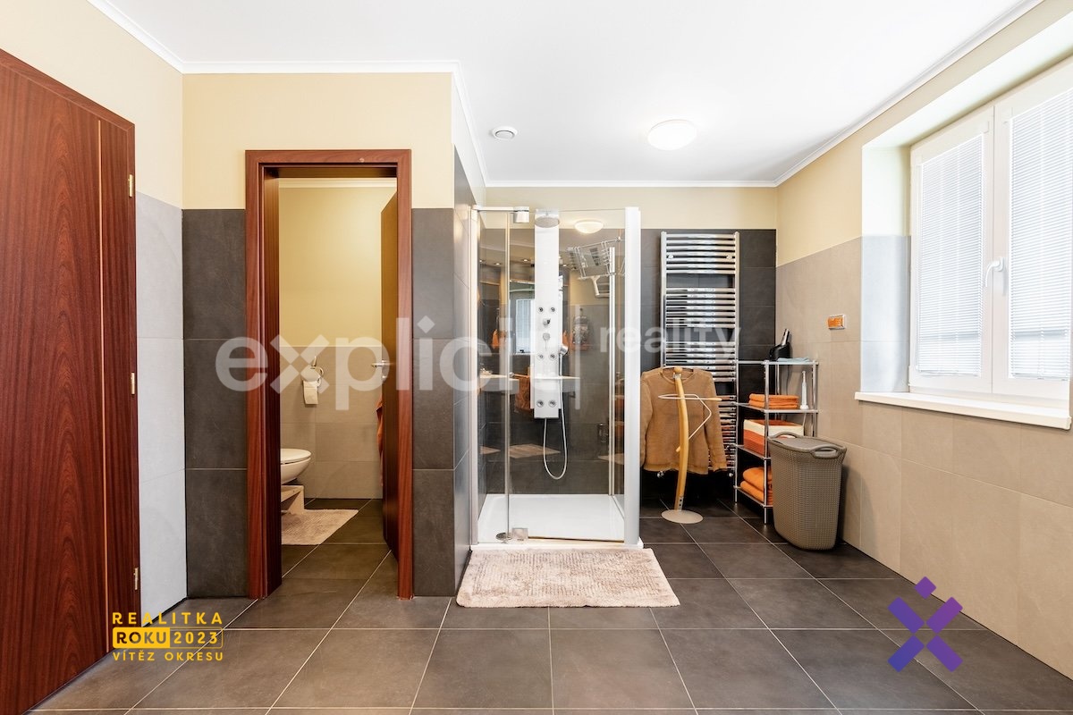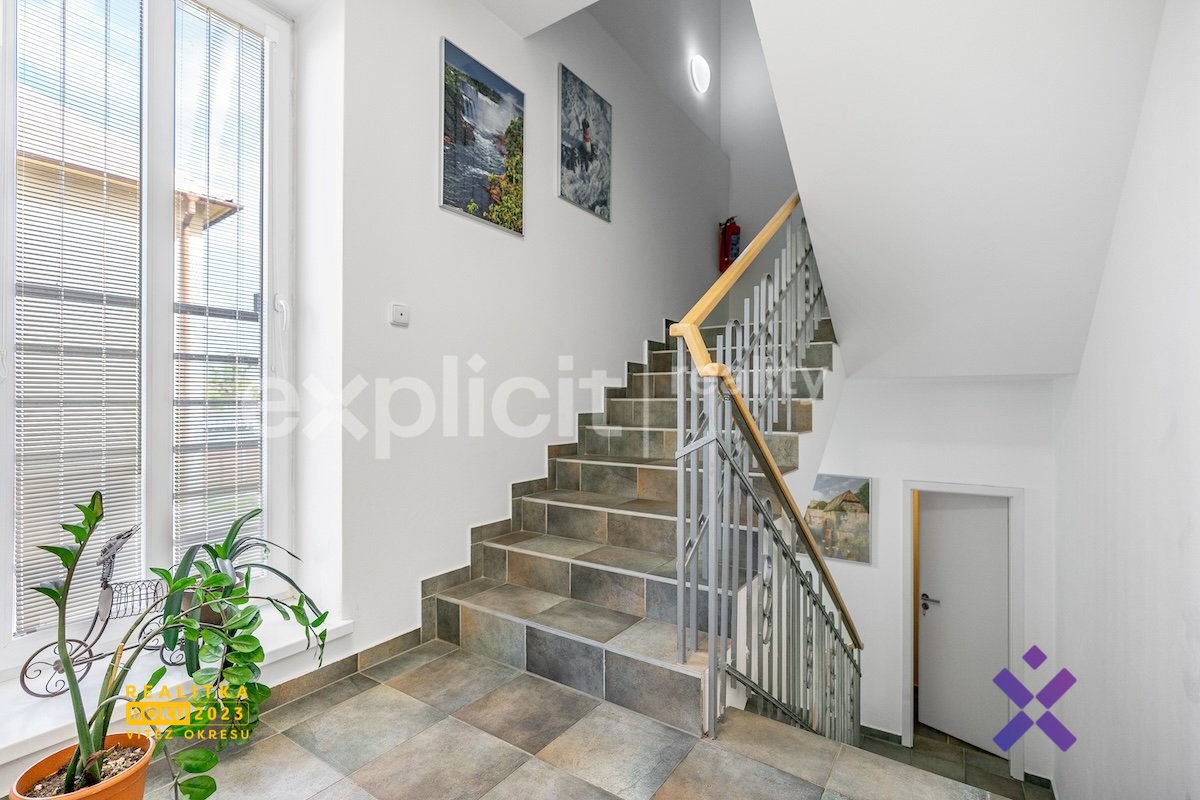 Jedná se o částečně podsklepený třípodlažní dům ve výborném stavu, který byl kolaudován v roce 2006. Před domem se nachází dostatek parkovacích míst a zároveň další plocha pro parkování je na vlastním pozemku za branou. (Je rovněž vydáno stavební povolení na garáž). Dům se nachází na klidném místě s výbornou dostupností na dálnici, což jej kromě vícegeneračního bydlení předurčuje také jako sídlo firmy apod.