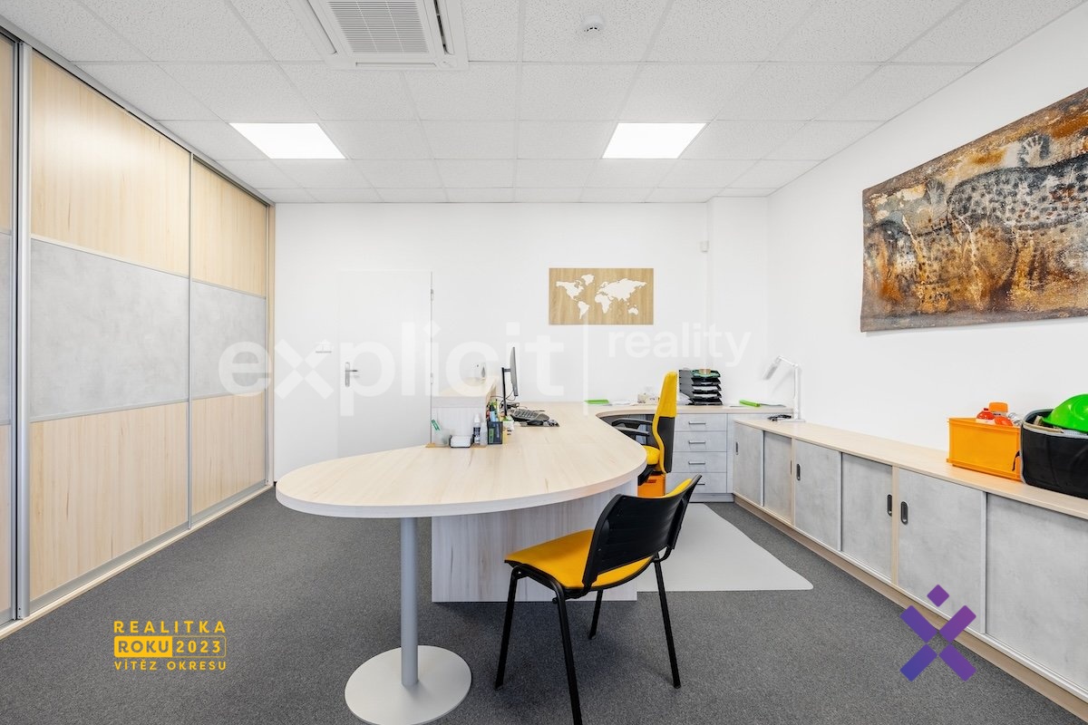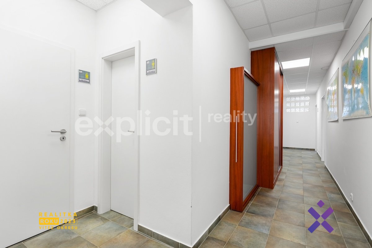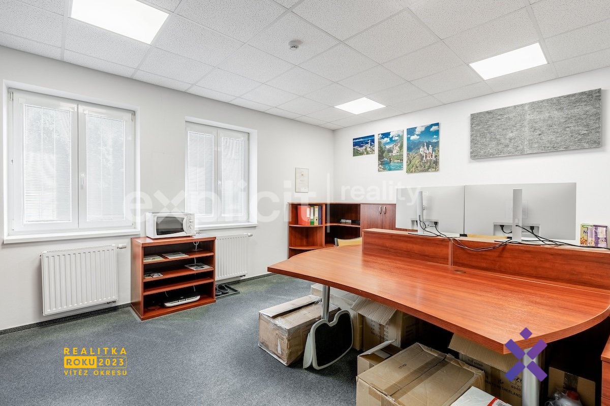 Ve 2. NP jsou další kancelářské prostory přístupné bočním vchodem. Zde je možnost rozdělit na samostatnou kancelář 26 m2 a zbývající kanceláře o 4 místnostech a soc. zázemím.