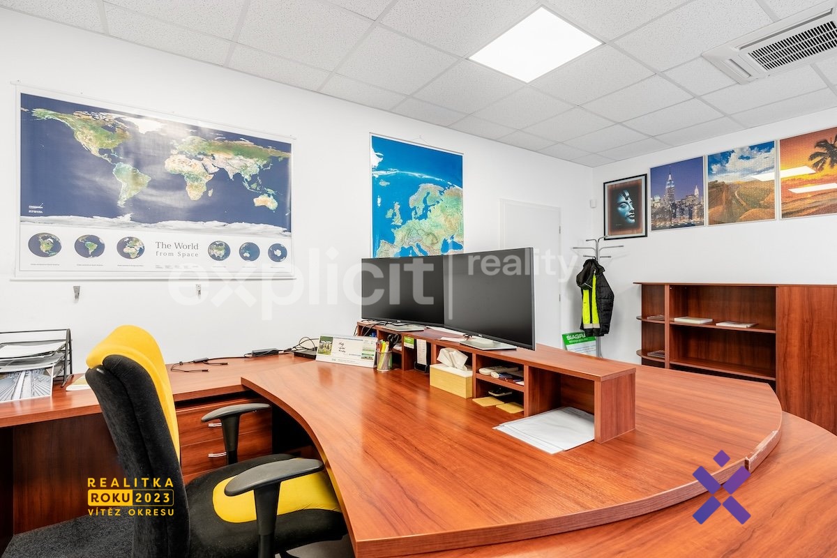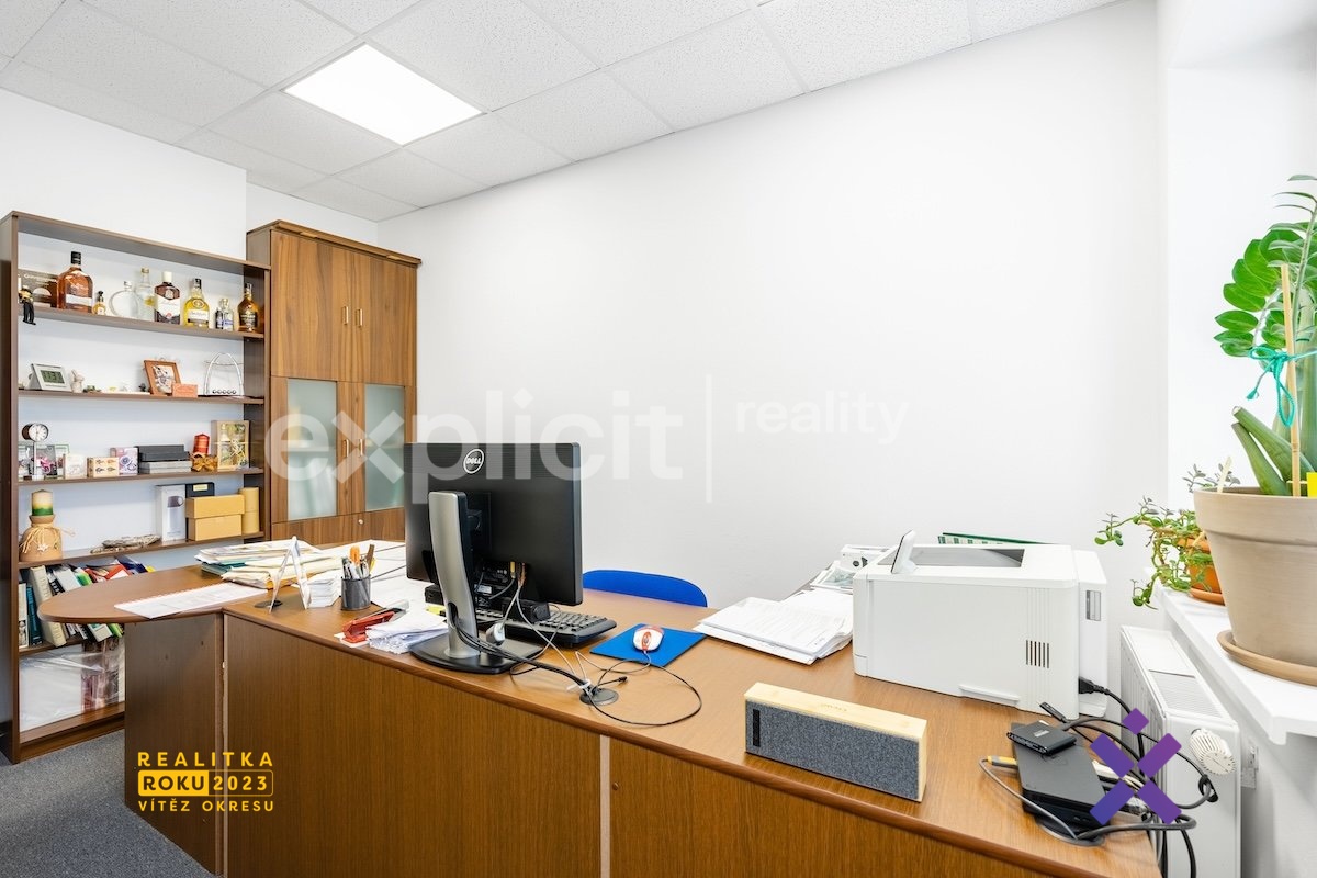 V 1. NP jsou kancelářské prostory s možností vstupu přímo z ulice a zároveň s bočním vstupem pro zaměstnance.