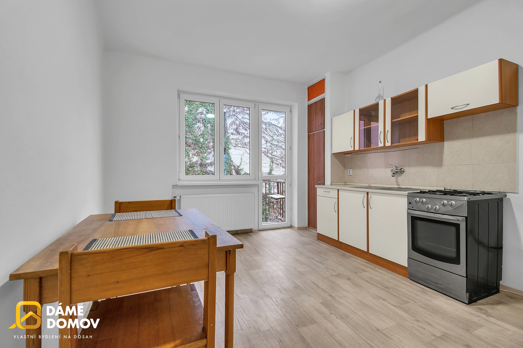 Tento prostorný a světlý byt má velké, neprůchozí pokoje, prostornou kuchyň, s dostatkem místa na jídelní kout, ze které se vstupuje na balkón, orientovaný do dvora. Byt se nachází ve 3. patře malého, zatepleného bytového domu, což obyvatelům bytu zajišťuje klid a soukromí. Byly částečně vyměněny podlahy a je vyměněná kuchyňská linka. Součástí bytu je prostorná komora a k dispozici je také sklep.