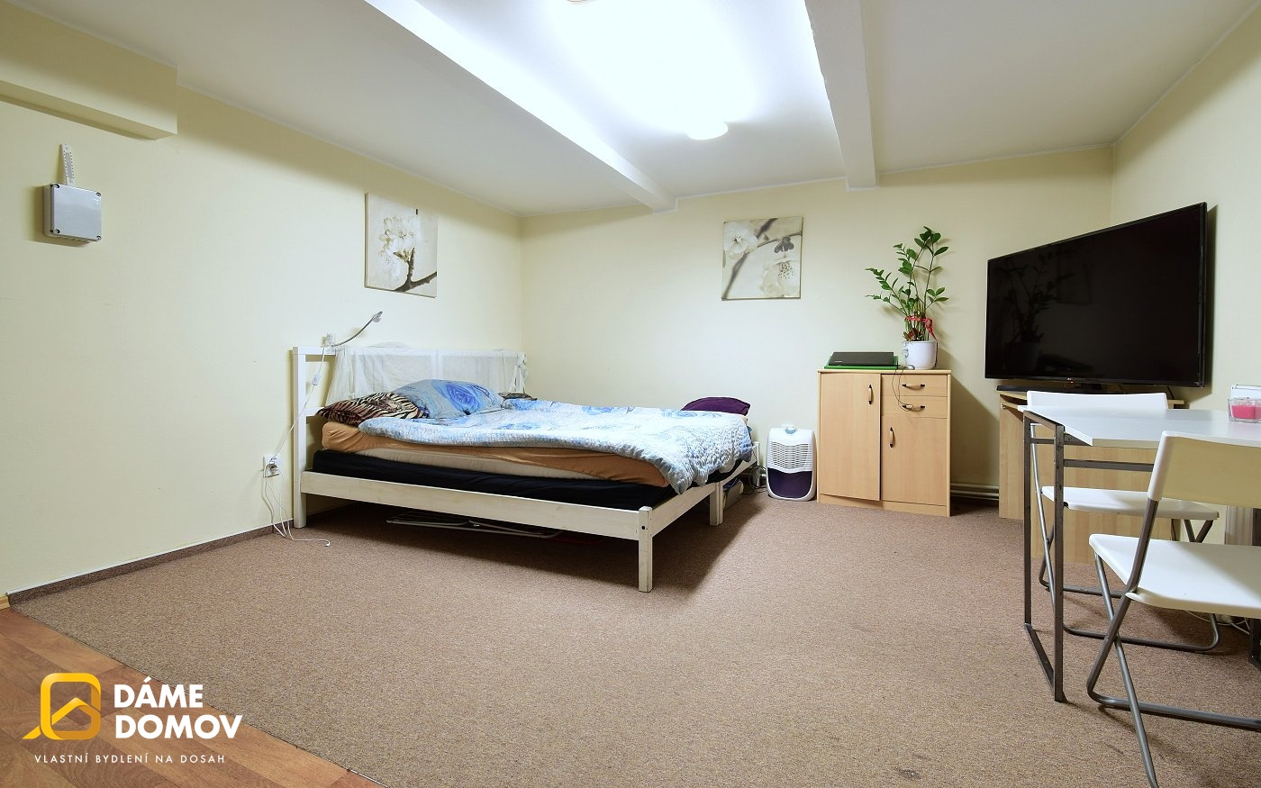 Byt je ihned k dispozici a pronajímá se zařízený, jak vidíte na fotografiích, včetně postele, skříně, stolu, kuchyňské linky s varnou deskou, lednicí a rychlovarnou konvicí. Součástí bytu je rovněž koupelna se sprchovým koutem a WC. Za domem se nachází prádelna a kolárna, parkování na ulici před domem.