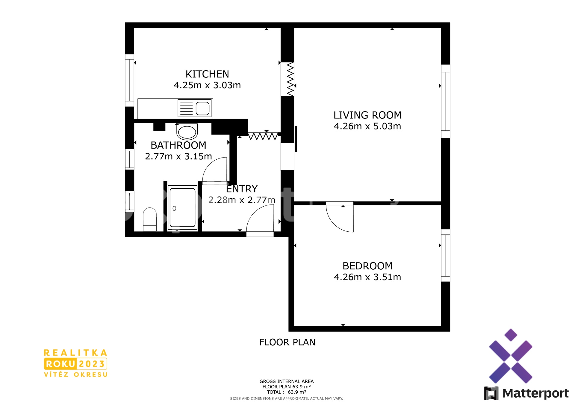 Podlahová plocha bytu činí 64 m2, sklepní kóje 2 m2, velký sklep 16 m2, celkem máte tedy k dispozici 82 m2.