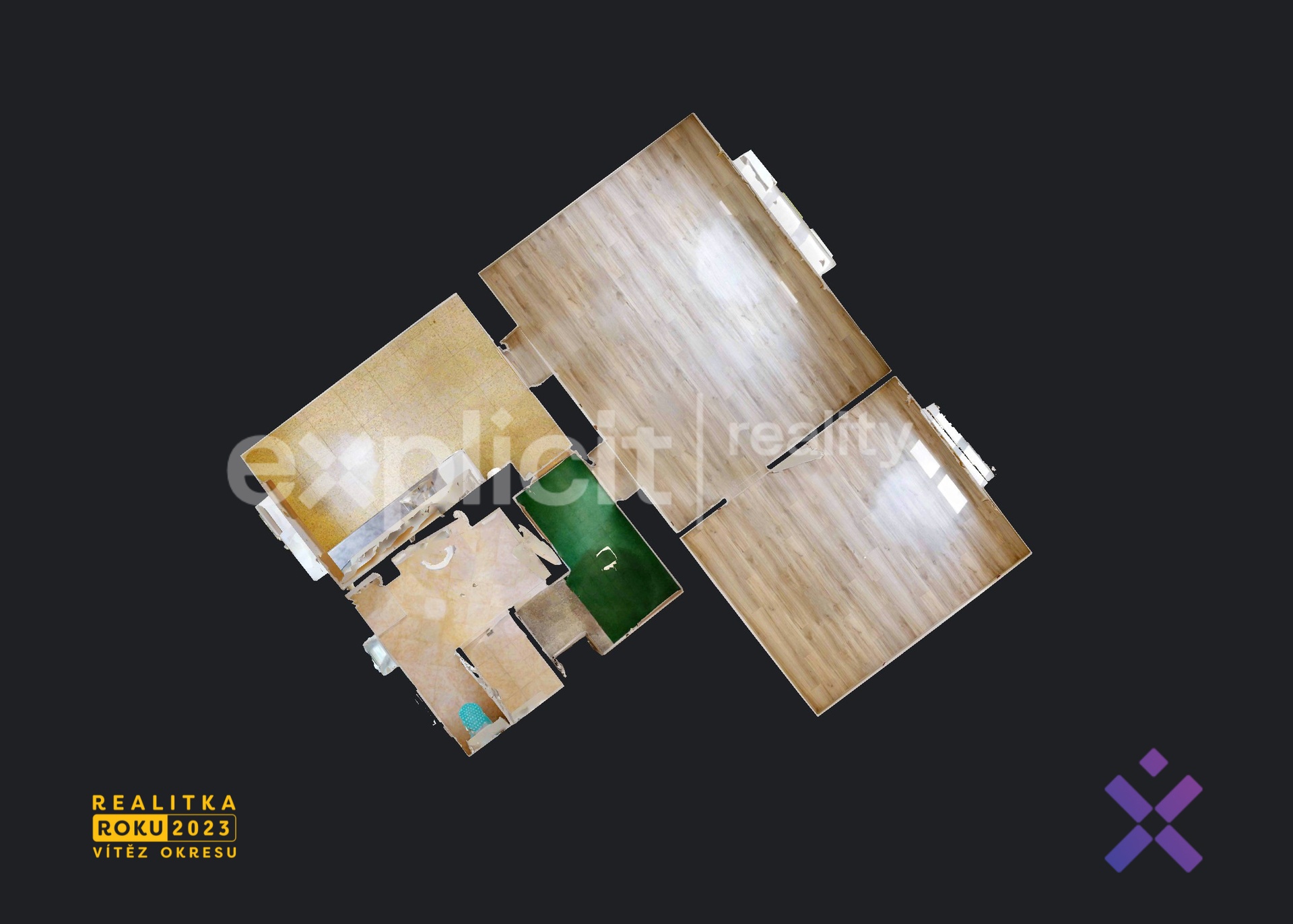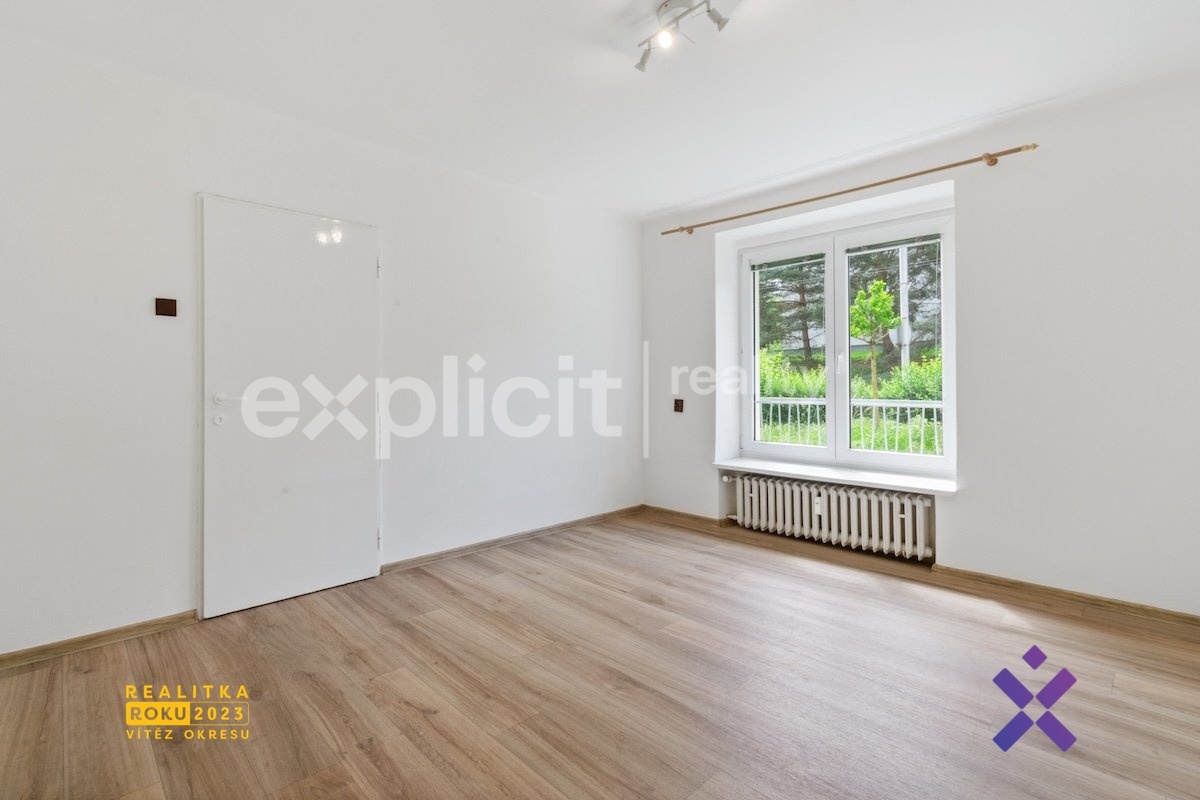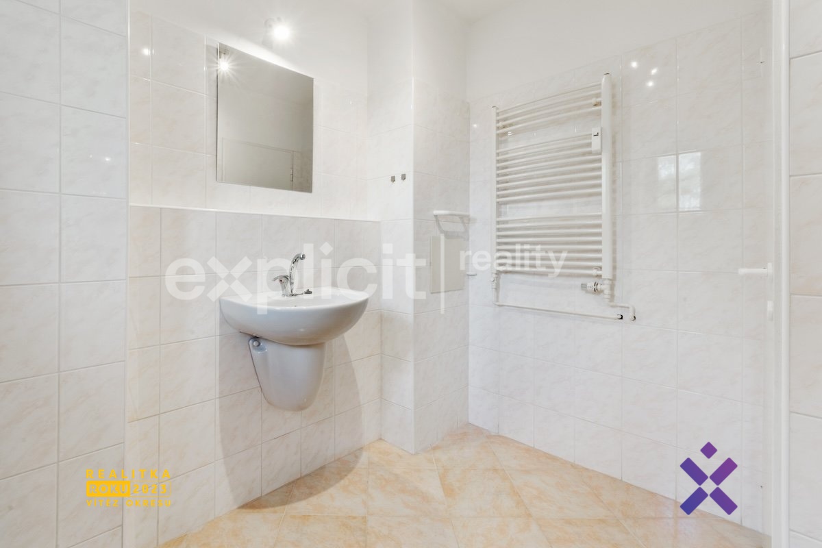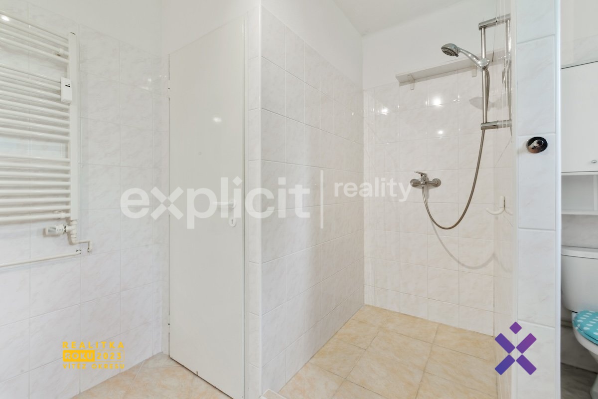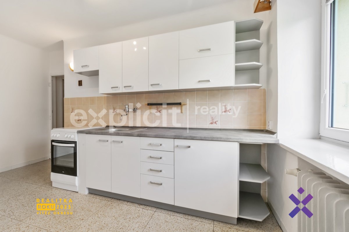Byt se nachází ve zvýšeném prvním podlaží cihlového, třípodlažního domu a je po částečné rekonstrukci, má plovoucí podlahy, plastová okna se žaluziemi, novou kuchyňskou linku a prostornou koupelnu se sprchovým koutem a WC. K dispozici máte rovněž dva vlastní sklepy – jednu klasickou sklepní kóji a druhý velký sklep s oknem a zavedenou elektřinou, který může sloužit např. i jako dílna, nebo jiná pracovna. Velkou výhodou je dostatečně velké parkoviště u domu, vyhrazeno jen pro obyvatele bytů. Před i za domem je dostatek zeleně což zajišťuje jednak hezký výhled, ale také klidné a příjemné bydlení.