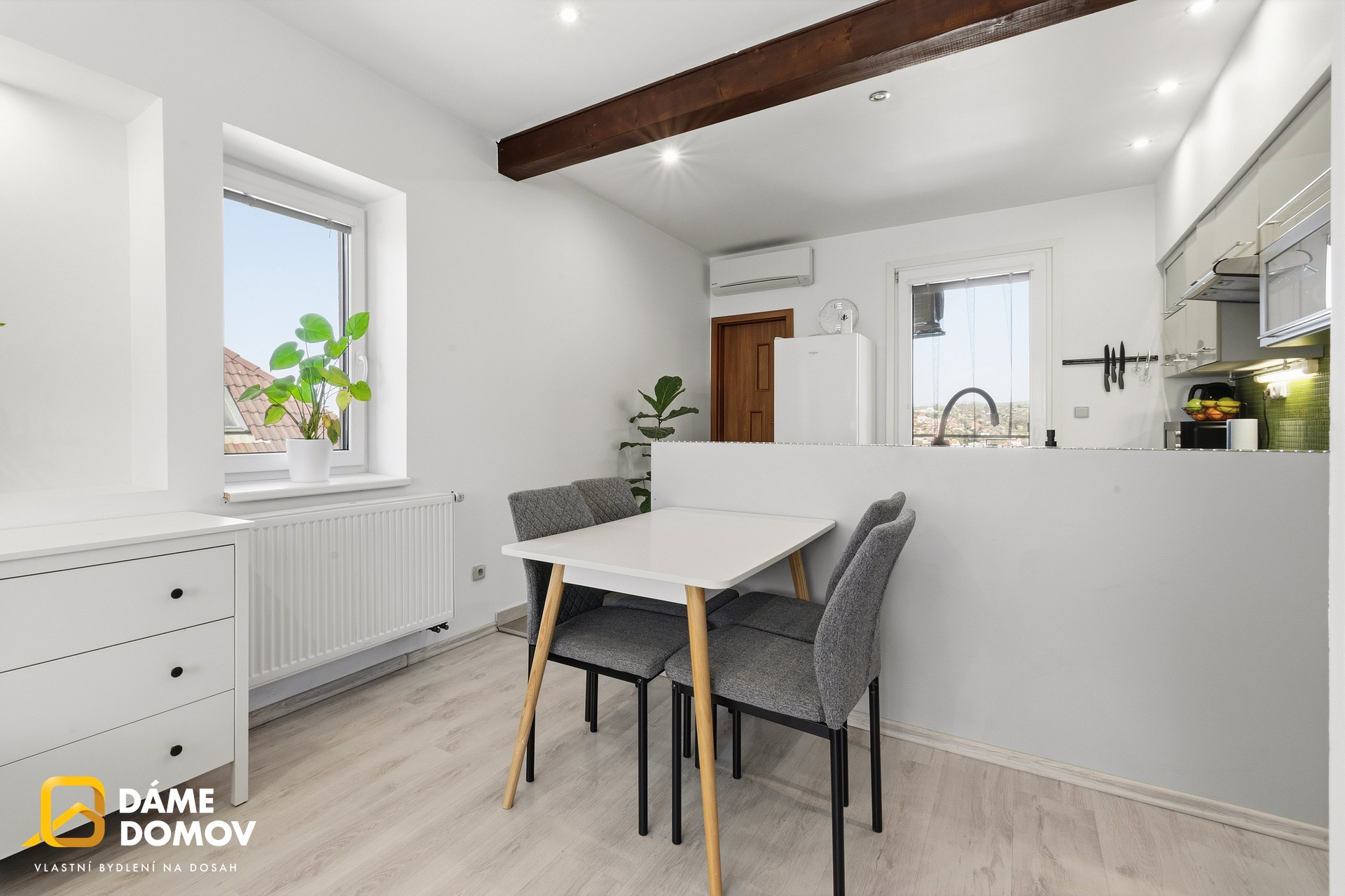 Nachází se v rekonstruované vile na Podhoří, s balkónem a výhledem na Zlín. K dispozici je rovněž sklep a vlasní parkovací stání. Samotný byt je situován v prvním patře (2. NP), má dva prostorné pokoje, kuchyňský kout, koupelnu s WC, komoru. Pronajímá se bez nábytku na fotografiích, pouze s kuchyňskou linkou se spotřebiči a vestavěnými skříněmi. Pro ještě lepší komfort je vybaven také klimatizací. K dispozici máte velkorysých cca 84 m² + sklep + parkovací stání.
